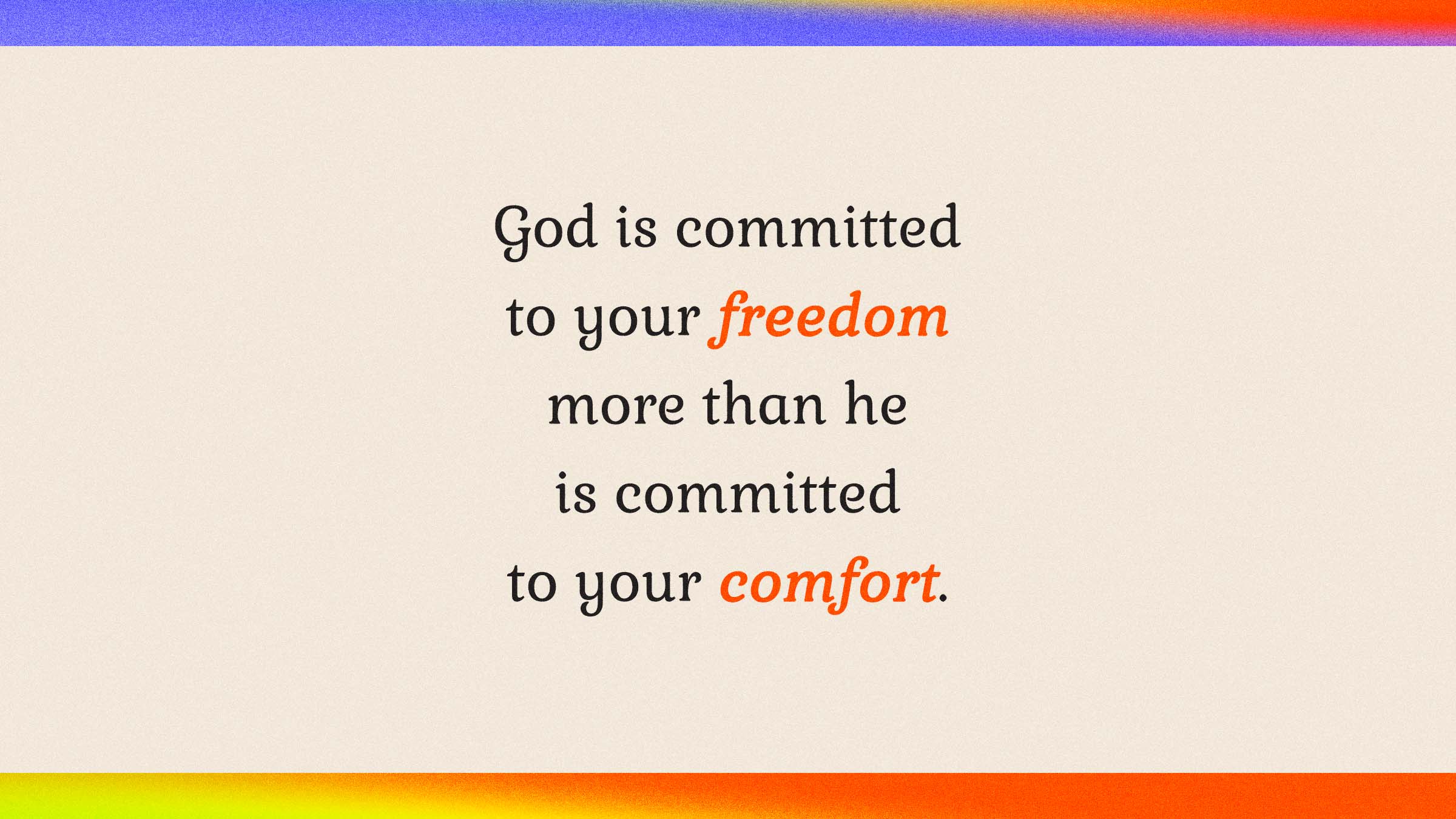 “God is committed to your freedom more than he is committed to your comfort”